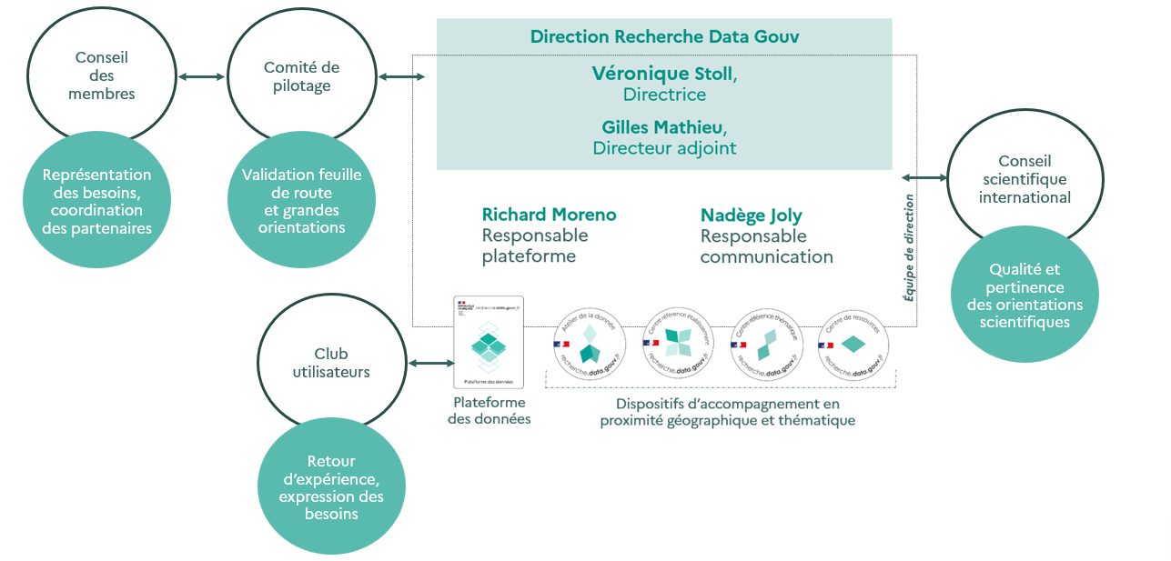 The governance of Recherche Data Gouv is based on four bodies that coordinate and guide its actions: